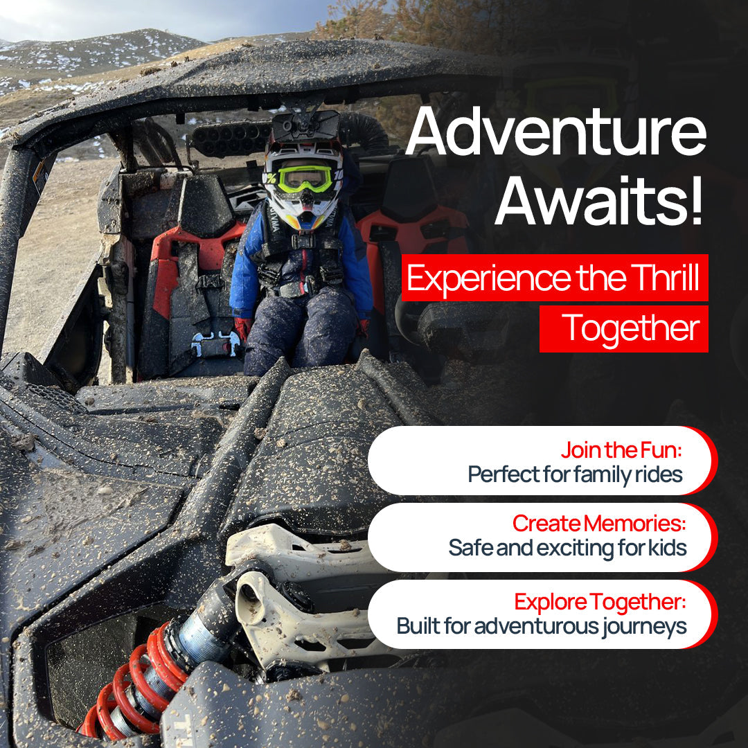 When you take your Maverick out on the trail you know the little ones are the pros at adventures so why leave them behind? The Can-Am Maverick X3 Bump Seat grants peace of mind so the little adventurers can tag along. The Maverick X3 Bump Seat adds extra seating, additional height allowing your little rider to see. This Bump Seat is made of black vinyl and has a 4 point harness with a sewn in harness pad. The harness also includes a front chest buckle for convenience. This Bump Seat with harness is excellent for children so when the little adventure pros ask to come along, let them!!! They may inspire you!