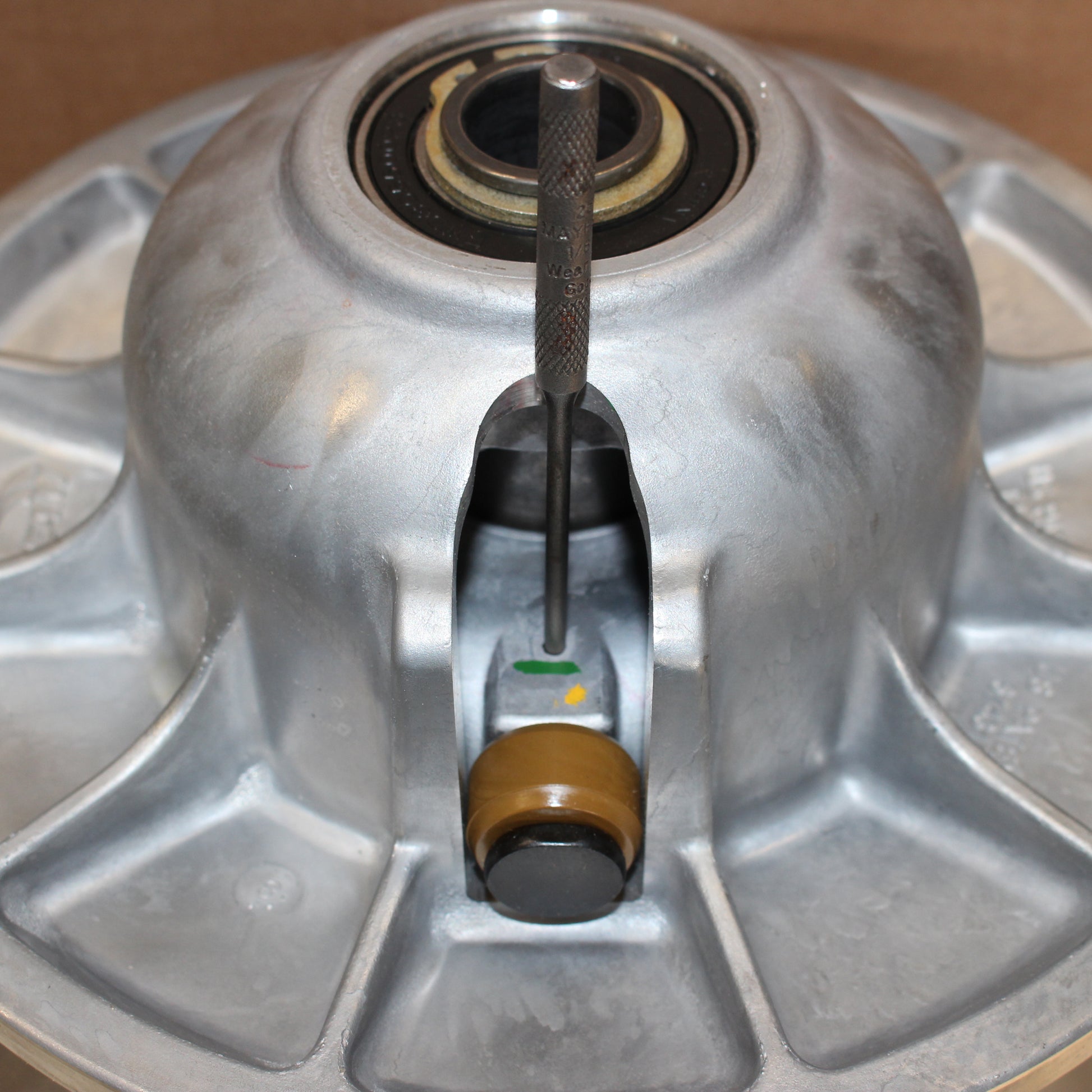 This handy self-aligning punch allows you to remove and re-install the roll pins on the TEAM Tied and BOSS secondary clutch to allow replacement of the rollers or square sliders.